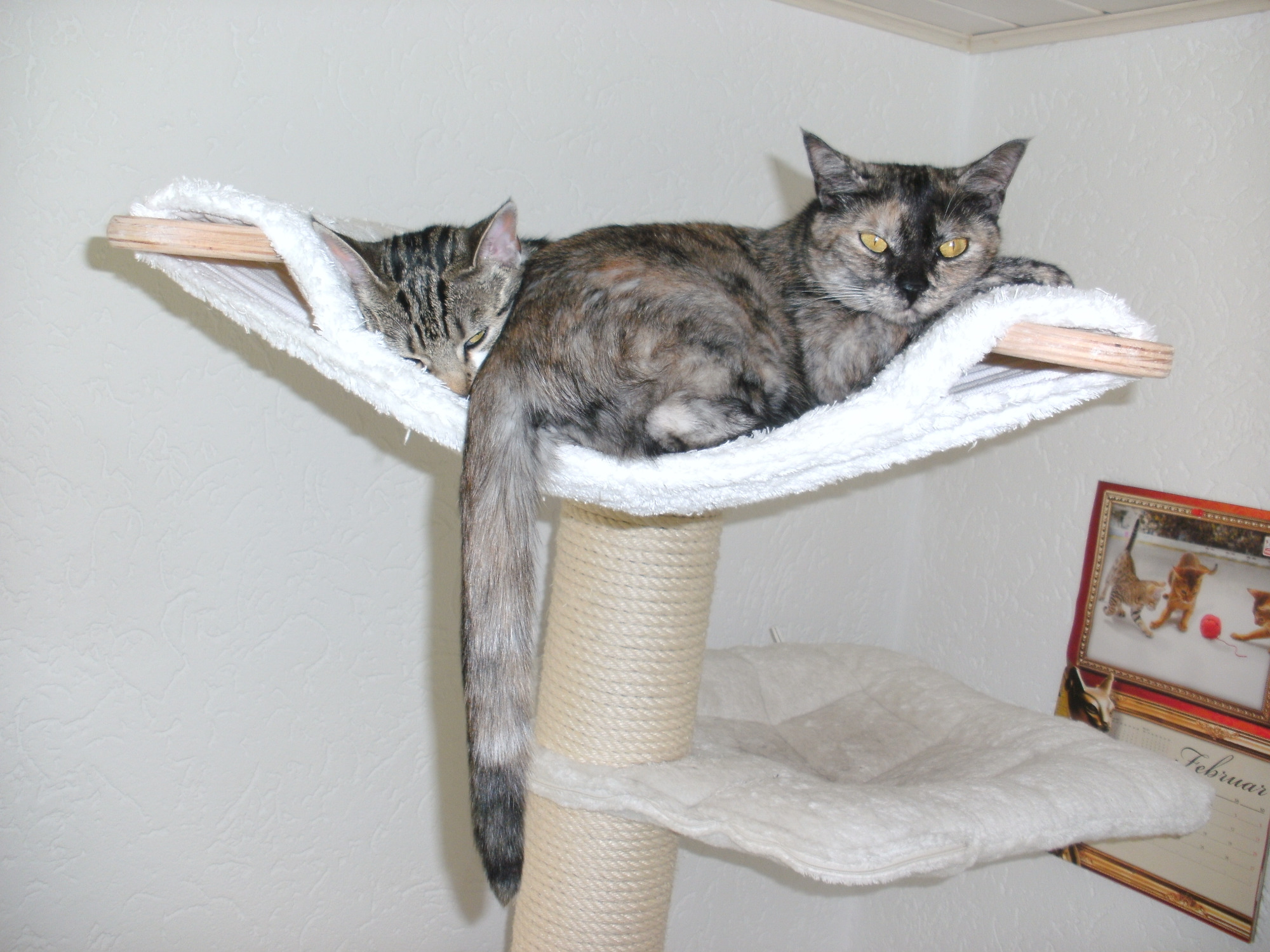 Miezen gab es schon immer in meinem Leben. Die ersten, an die ich mich erinnere, waren "die alte Katz" (sie hieß wirklich so, weil ihre Babys eben die jungen waren) und eine ihrer Töchter, "Midi". Die beiden waren schon ältere Semester, als ich ein Kleinkind war. Im Sommer 1979 war es dann soweit, ich wurde stolze Inhaberin meines ersten eigenen Kätzchens. Meine Freundin aus der Nachbarschaft hatte die kleine Tiger-Miez von Arbeitern auf einer Baustelle in die Hand gedrückt bekommen und brachte sie sofort zu mir, als Überraschung unterm Pulli... Natürlich kassierte ich die Mini-Katze ein und ließ sie nicht mehr aus den Klauen! Das Ende der Sommerferien war natürlich sehr unangenehm, als ich plötzlich wieder in die Schule musste, anstatt das Kätzchen weiter zu beglucken... Nebst Milch- und Wärmflaschen und ganz viel Liebe bekam sie einen Namen, schlief bald mit mir im Bett und wurde zu meiner engen Freundin und Begleiterin durch die Kindheit und ganze Jugendzeit. Ich war 23, als ich sie im Alter von 15 Jahren gehen lassen musste. The first cat is the deepest.... 🎔